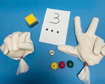 Die mit Sand gefüllten Handschuhe laden die Kinder zum Zählen ein. Gelingt es, die gewürfelte Augenzahl mit den Fingern nachzulegen, einen Turm mit der entsprec… Zum Bildungsangebot