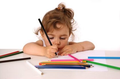 Die Kleinkinder malen ein Ausmalbild aus, auf dem ein Feuerwehrauto abgebildet ist. Wenn die Jüngsten das Bild mit den Buntstiften anmalen, fördern sie ihre Feinmotorik. Indem Sie mit den Jüngsten die Bilddetails besprechen, fördern Sie auch den Wortschatz der Kinder.
