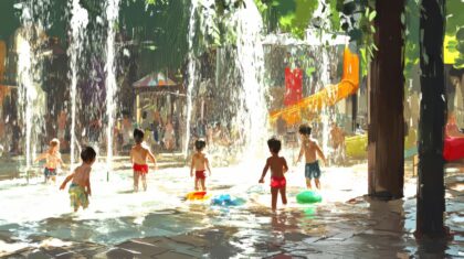 Plantschen, Spritzen und Nasswerden erleichtern das kindliche Spiel in der sommerlichen Hitze. Diese Spielformen regen zum fröhlichen Bewegen an und lassen den Körper zwischendurch immer wieder einmal Abkühlung genießen.
