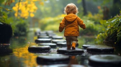 In diesem Spiel können die Kinder sich in ihrer Geschicklichkeit üben. Dies geschieht, indem sie mit nackten Füßen von einer Teppichfliese zur nächsten treten – ohne dabei den Boden zu berühren.