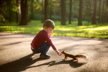 Die Kinder schlüpfen in die Rolle des Eichhörnchens, das viele Nüsse sammelt, um sich auf den Winter vorzubereiten.