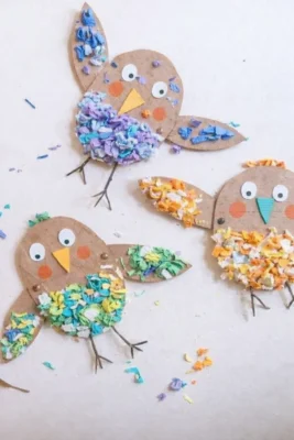 Der Frühling ist da und mit ihm zwitschern die Frühlingsboten wieder fleißig in den Lüften. Beim Basteln dieser bunten Frühlingsvögel fördern Sie die Feinmotorik und Schneidefähigkeiten der Kinder. Die fertigen Vögel schmücken den Gruppenraum frühlingsbunt.
