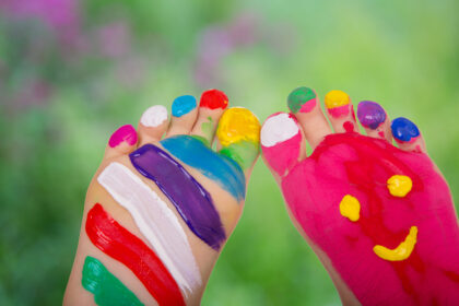 Wenn die Kleinkinder mit einer Sprühflasche Farbe auf ein Papier sprühen macht das nicht nur Spaß, sondern fördert auch die Feinmotorik, wenn die Kinder den Sprühknopf drücken. Ganz nebenbei entstehen abstrakte Bilder aus Wasser und Farbe.