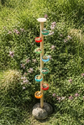 Heute werden Kunststoffdeckel sinnvoll genutzt und zu einer Insektentränke verarbeitet. Die Kinder lernen dabei, dass es wichtig ist, auch die Insekten mit Wasser zu versorgen. Beim gemeinsamen Tun ist volle Aufmerksamkeit gefordert, damit der Kleber nicht auf den Fingern landet.