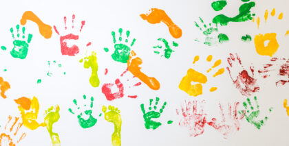 Mit einfachen Mitteln können schon Kinder unter 3 kreativ werden. Besonders geeignet sind Fingerfarben und der Einsatz des eigenen Körpers. So entsteht mit Handabdrücken eine bunte Sommerblumenwiese.
