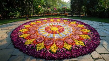 Wenn die Kinder genau hinschauen, finden sie in dem bekannten Garten der Einrichtung jede Menge interessante Naturmaterialien. Daraus erschaffen Sie gemeinsam ein fantasievolles Mandala.