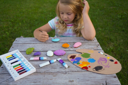 Derzeit können Kinder draußen überall kleine Krabbelkäfer beobachten. Oder sie gestalten ganz besondere Käfer mit Steinen selbst. Diese können die Kinder anschließend in Blumenbeeten oder -töpfen als kleine Deko platzieren.