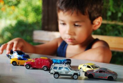 Ab 2 Jahren. In diesem Experiment geht es um schnelle Autos. Gewinnen und Verlieren ist für die Kinder in diesem Alter noch unbedeutend. Dennoch ist es spannend und faszinierend zu betrachten, wie die Plastikautos mit Luftantrieb davonsausen.