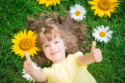 Die runde, dunkle Scheibe zwischen den gelben Blütenblättern verbirgt den wertvollen Schatz der Kerne. Fotografieren Sie heute die Kinder mit ihren Sonnenblumenkronen, um anhand dieser abgebildeten Schätze ein Rätsel zu erstellen.