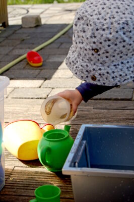 Kinder unter 3 brauchen nicht unbedingt teure vorgefertigte Materialien. Einen besonderen Reiz üben Alltagsdinge aus. Diese wollen entdeckt und begriffen werden. Bieten Sie darum diese Woche Gegenstände und Utensilien aus Küche und Vorratsschrank zum Experimentieren an. Mit Schütt- und Füllspielen können sich die Kinder nach und nach die Welt erschließen, z. B. „Wie viel passt in welche Schüssel? Wie viel auf welchen Löffel?“