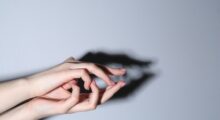 Beide Hände flach aufeinanderlegen. Dann im Wechsel öffnen und schließen. |