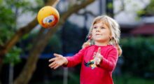 In dieser Woche dreht sich alles um den Ball. In verschiedenen Angeboten fordern Sie die Kinder heraus und sorgen so für Unterhaltung. Im 1. Angebot schicken die Kinder Bälle durch eine Röhre, und für die Jüngsten gibt es eine Bauch-Ball-Gymnastik. Welcher Ball passt durch welches Loch? Mit diesem Spiel können die Kinder sich lange beschäftigen und etwas über verschiedene Größen erfahren. Dann haben die Kinder Spaß beim Wasserspiel, wenn sie die Bälle mit der Schöpfkelle aus dem Wasser fischen dürfen. Zum Schluss machen die Bälle Musik, da sie in Plastikflaschen hin und her bewegt werden.