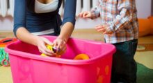 Schütten Sie einen Korb mit Tannenzapfen und kleinen Stöckchen auf dem Boden aus. Achten Sie darauf, dass Sie die Kinder nicht mit zu viel Material überfordern. Dann stellen Sie 2 Körbe auf den Boden. In einen Korb legen Sie 1 Stöckchen und in den anderen 1 Tannenzapfen. Nachdem die Kinder die Materialien auf ihre Beschaffenheit hin erkundet haben, kann mit dem Einräumen begonnen werden. Die Tannenzapfen kommen in den Korb mit dem Tannenzapfen und die Stöcke in den Korb mit den Stöckchen. Wenn alles eingeräumt ist, macht es den Kindern bestimmt Spaß, alles wieder auszukippen und von Neuem mit dem Spiel zu beginnen.