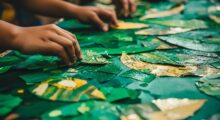 Die Kinder bekommen ein großes Blatt Papier und jede Menge Kleister und Laubblätter. Mit den Fingern verteilen die Kinder den Kleister auf dem Papier. Nach dem Händewaschen können sie dann ein Mandala erstellen oder die Blätter nach Lust und Laune aufkleben. Nach dem Trocknen dürfen die Bilder ausgestellt werden.