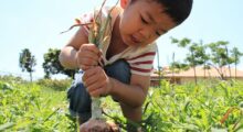Die Kinder können mutmaßen bzw. sagen, um was es sich handelt. Anschließend dürfen alle die verschiedenen Erntegaben betrachten, anfassen und daran riechen. „Wie fühlt sich der Apfel an? Wie riecht er?“ usw.