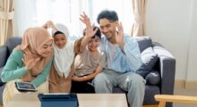 Treffen Sie sich mit Ihren Kindern im Stuhlkreis. Ein Kind spielt den „Gastgeber“. Dieser winkt einem Mitspieler zu und lädt ihn mit folgenden Worten ein: