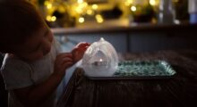 Zum Schluss kann das Kind das LED-Teelicht in die nun fertige Eislaterne stellen. Wenn Sie möchten, können Sie das Licht etwas dimmen. Auf diese Weise entsteht eine gemütliche Atmosphäre.