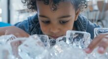 Am Experimentiertisch angekommen, drehen die Kinder ihre Förmchen mit der Plastikseite nach oben auf den Tisch. Nach ein paar Minuten löst sich das Eis aus der Form. Die Kinder heben ihre gefrorenen Formen aus Eis hoch und bestaunen gegenseitig ihre wunderschönen Eisskulpturen. So fördern Sie ganz nebenbei auch die Interaktion der Kinder untereinander.