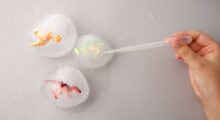 Dann sagen Sie den Kindern, dass es einen Trick gibt, mit dem sie die Eiswürfel angeln können.