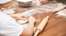 Besorgen Sie mit den Kindern die Zutaten, und beginnen Sie wie folgt: Die Kinder geben das Wasser in eine Schüssel und lassen die Butter darin zergehen. Die Hefe wird dann ins Wasser gebröselt und darin verrührt. Danach gibt ein Kind das Roggenmehl zusammen mit der Hälfte des Weizenmehls in eine 2. Schüssel und mischt es mit dem Salz. Die aufgelöste Hefe der ersten Schüssel wird mit dem Mehl in der zweiten Schüssel zu einem glatten Teig verknetet, der so lange in der Schüssel geschlagen wird, bis er Blasen wirft. Dann lassen ihn die Kinder zugedeckt 50 Minuten gehen.