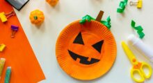 Treffen Sie sich mit 4 bis 6 Kindern im vorbereiteten Bereich und zeigen Sie ihnen die Materialien. Jedes Kind erhält von Ihnen einen Pappteller, aus dem die gruseligen Figuren gebastelt werden, und bastelt die gewünschte Halloween-Figur.