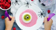 Sie kennen die aktuellen Vorlieben am besten. Fragen Sie beispielsweise ihre Geister-Fans: „Wie könntest du aus diesem Teller ein Gespenst machen? Welche Farbe hat das Gespenst? Hat es Augen?“