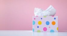 Schneiden Sie die ausgewählten Stoffe in ungefähr gleicher Größe zu, sodass Sie die Papierbox damit befüllen können. Die Größe der Stoffe richtet sich nach der Größe Ihrer Box. Befüllen Sie die leere Papiertücher-Box mit verschiedenen Stoffresten. Wichtig ist, dass die Stoffe sich beim Anfassen voneinander unterscheiden.