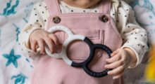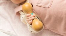 Fertig ist die Rassel. Das Kind nimmt die Rassel am Hauptast/Hauptstamm in die Hand und bewegt sie hin und her. Dadurch entstehen verschiedene Rasselgeräusche.