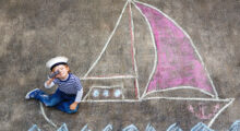 Das eigentliche Angebot beginnt. Setzen Sie sich mit den Kindern in einen Sitzkreis rund um die zuvor aufgebaute Spiellandschaft. Erarbeiten Sie zunächst mit den Kindern die dargestellten Spielebenen: die Stadt, das Meer und das Schiff.