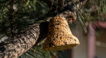 Bevor die Meisenglocke im Freien zum Einsatz kommt, sollte sie unbedingt vollständig ausgehärtet sein. Dort kann sie mit dem Ast in die Erde gesteckt oder kopfüber vor dem Fenster aufgehängt werden. Der Nikolaus hat auch an die Vögel gedacht und ihnen etwas Nahrhaftes mitgebracht!