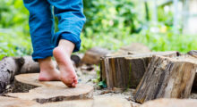 Sobald Sie 5 bis 6 Baumstämme zugesägt und geliefert bekommen haben, gehen Sie mit den Kindern in den Garten. Überlegen Sie dort gemeinsam, wo und in welcher Ordnung Sie die Stämme leicht in den Boden eingraben, damit die Kinder gefahrlos darüber hinweg balancieren können. Die Kinder können entscheiden, ob die Stämme im Zickzack, in einer Reihe, in Form eines Hauses etc. liegen sollen.