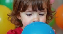 Jetzt pusten die Kinder etwas Luft in den Ballon. Dieser füllt sich mit Luft und wird größer. Das Volumen des Ballons sorgt dafür, dass die Kinder den Becher jetzt mithilfe des Ballons hochnehmen und in den ersten Becher der Reihe stapeln können.