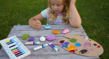 Die gesammelten Steine können die Kinder anschließend bemalen. Dazu nehmen sie mit einem Borstenpinsel etwas Farbe auf und streichen, malen oder tupfen die Farbe auf eine Seite des Steins. Sie können während des Malens Impulse geben, indem Sie die Kinder an beobachtete Käfer erinnern. „Weißt du noch? Der Käfer vorhin hatte viele Tupfen auf seinem Rücken.“