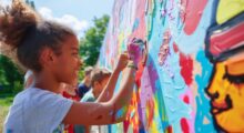 Arbeiten Sie bei diesem Angebot zunächst mit 2 Kindern. Breiten Sie das 1 m große Stück Maltapete auf dem Boden aus, und fixieren Sie es mit dem Klebeband. So kann die Tapete nicht mehr verrutschen. Fordern Sie die Kinder dazu auf, sich vor oder auf das Papier zu setzen. Dann sagen Sie: „Hier ist eine Linie. Jeder von Euch bekommt eine Hälfte der Maltapete zum Anmalen. Ihr teilt Euch eine Maltapete.“