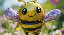 Bereiten Sie ein Luftballon-„Bienchen“ für jedes Kind vor. Dazu blasen Sie einen Luftballon nicht zu prall auf. Mit einem schwarzen wasserfesten Stift malen Sie seitlich 2 Flügel und vorne in die Mitte ein Gesicht.
