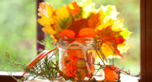 Jedes Kind nimmt sich ein Herbstblatt. Wie bei einem Scherenschnitt schneiden die Kinder mit einer spitzen Schere ein Gesicht in das Blatt. Dazu gehören 2 Löcher für die Augen, eines für die Nase und natürlich eines für den Mund. Je größer das Blatt ist, umso einfacher ist dies umzusetzen. Idealerweise zeigt der Blattstiel „wie ein Hals“ nach unten. Die so verzierten Blätter kleben die Kinder mit Klebeband ans Fenster, schon leuchten lustige Blatt-Männchen.