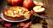 Der übrige, bereits ausgerollte Teig wird nun auf die Äpfel gelegt. Hierbei ist es nicht wichtig, dass alles gleichmäßig bedeckt ist. Kleine Lücken / Löcher in der Teigdecke stören nicht beim späteren Genuss.