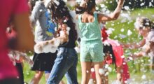 Entkleiden Sie die Kinder behutsam bis auf die Windel, und setzen Sie die Kinder auf den Boden bzw. die Handtücher. Dann geben Sie vor jedes Kind etwas Badeschaum auf den Boden. So können die Kinder das Material zunächst vorsichtig mit den Händen ertasten. Je nach Experimentierverhalten der Kinder geben Sie mehr und mehr Schaum auf den Boden, und die Schaumparty kann beginnen.