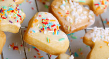 Verpacken Sie die süßen Knusperherzen am darauf folgenden Tag mit den Kindern in kleine Cellophantüten, und verschließen Sie diese mit einem bunten Geschenkband.